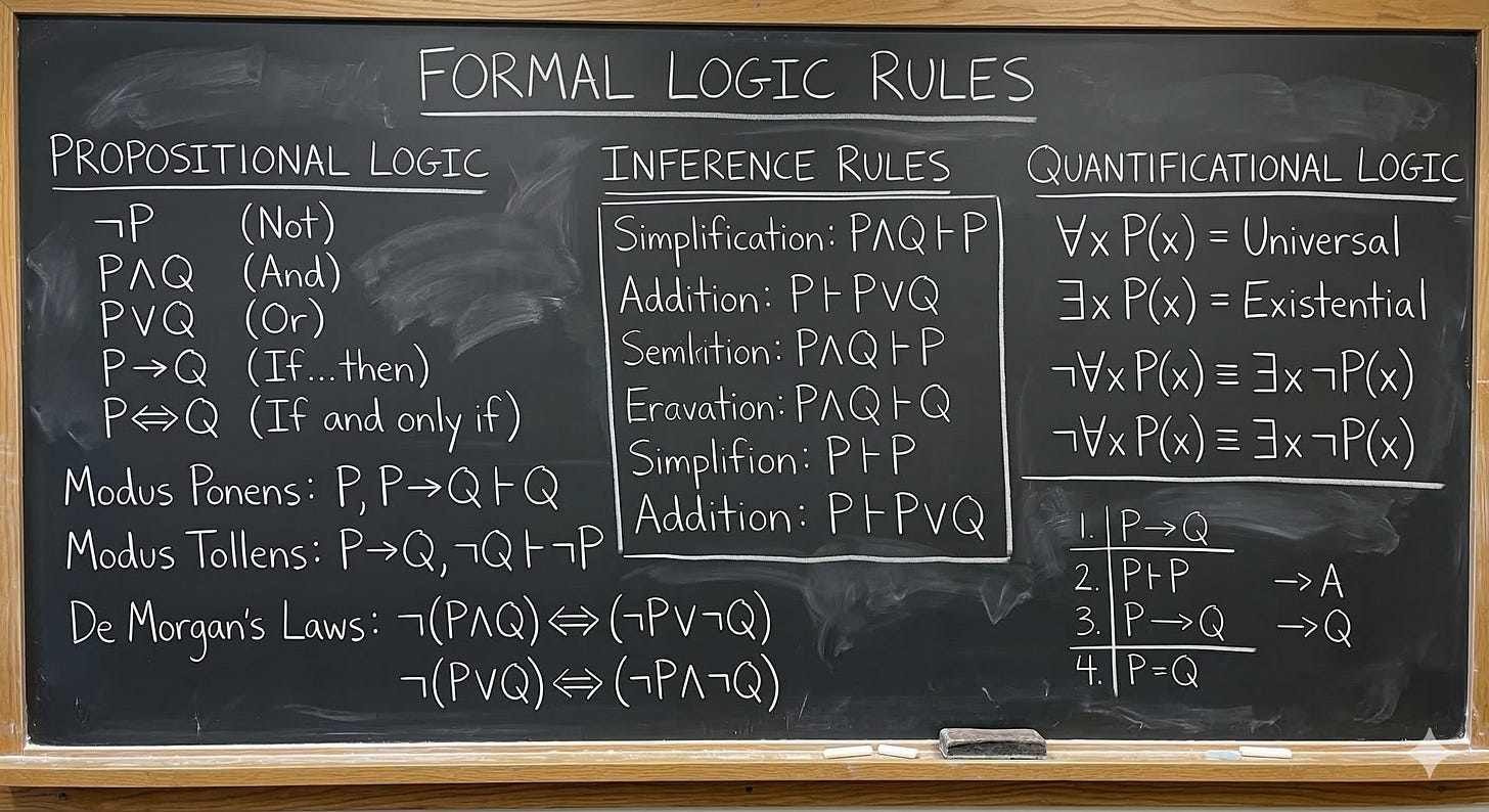 Let’s do exactly that. If you haven’t studied formal logic: (a) why the heck not? and (b) I’ve provided less-geeky translation of the math-looking stuff.